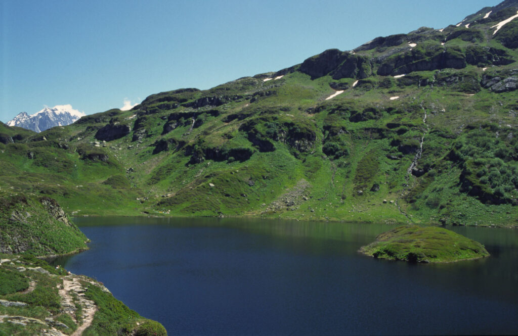 The lake itself is a mirror, reflecting the peaks of the aiguilles rouges and the distant silhouette of the montagne de pormenaz. The lac vert water is a vivid turquoise thanks to alpine limestone suspended in the meltwater. Photographers will love the early morning light when the sun paints the surrounding cliffs in gold.